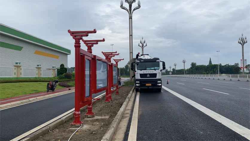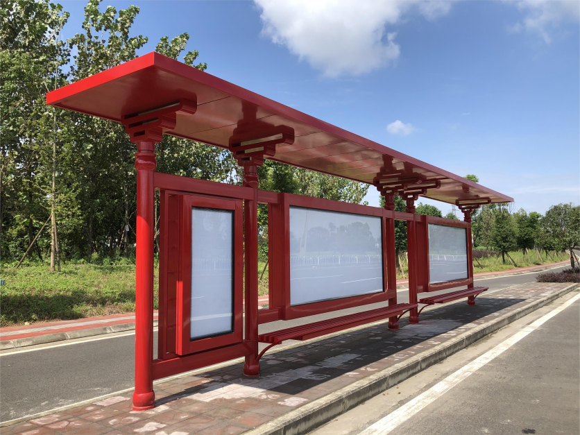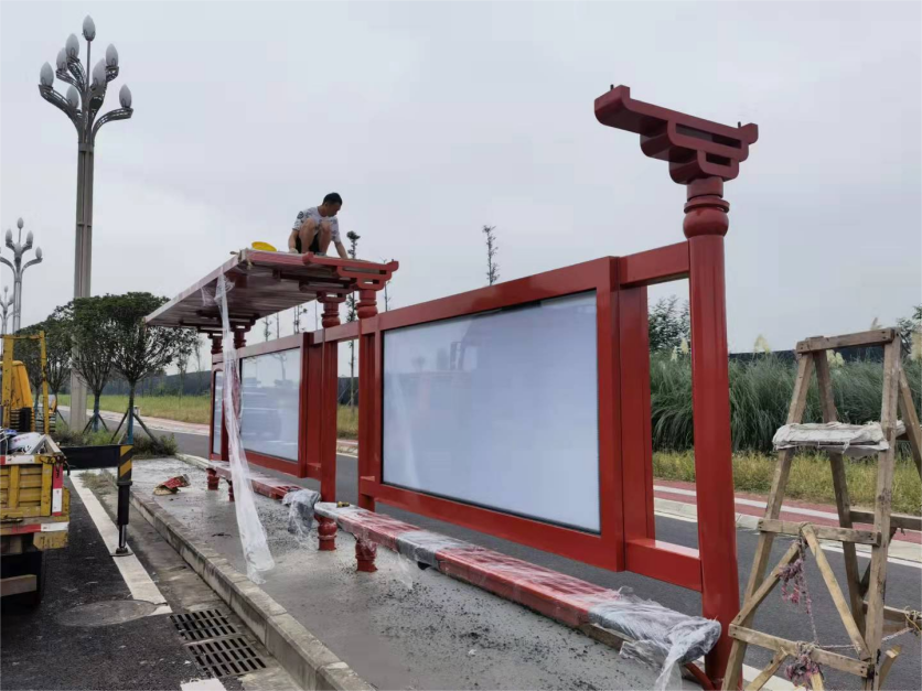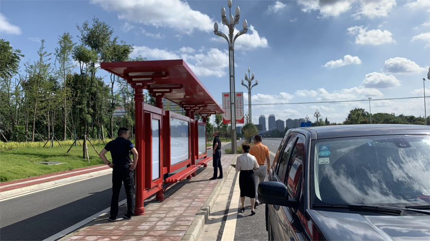 眉州因文豪軾聞名天下,與彭山接鄰的太和大道上,表面古色中國紅的S80S120公交站臺修建完成