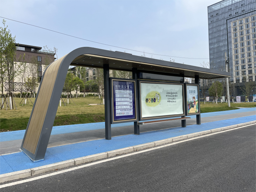 成都天府新區公交站臺新款亮相街頭,由我公司在梓州大道精心修建的這批公交站臺,工藝細節要求嚴格,現已順利完成移交。