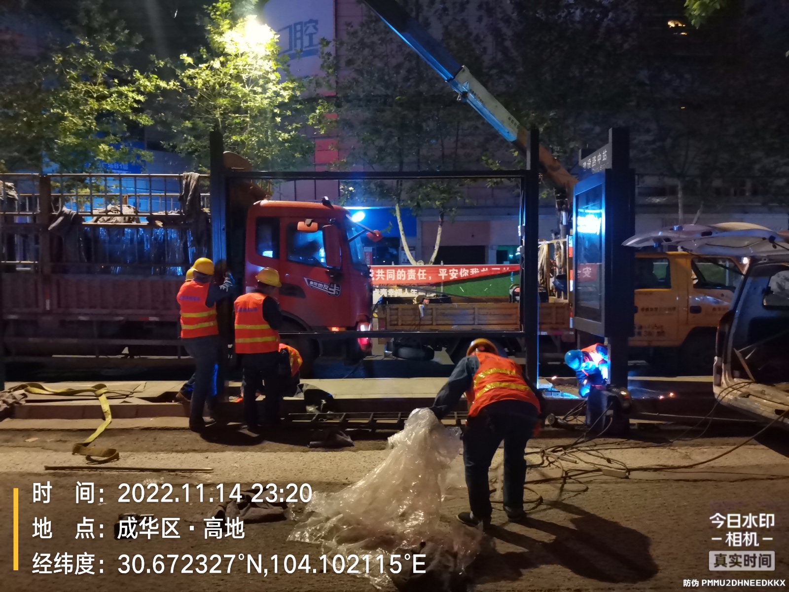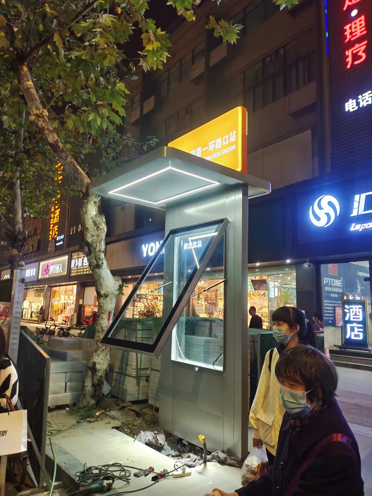 【鑫泰來候車亭】在成都市區又一智慧公交站棚案例完美呈現:55寸LCD電子站牌、新款站牌燈箱