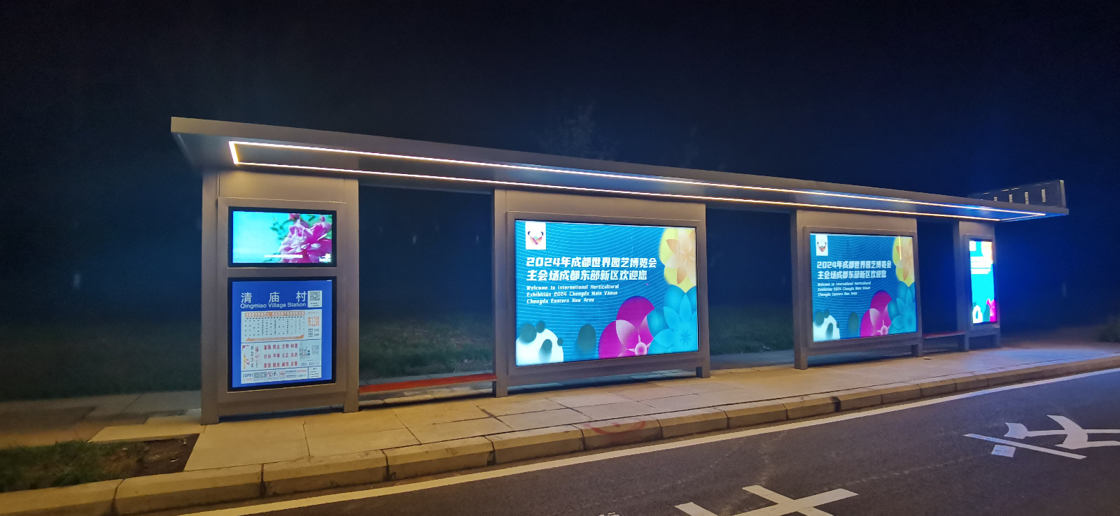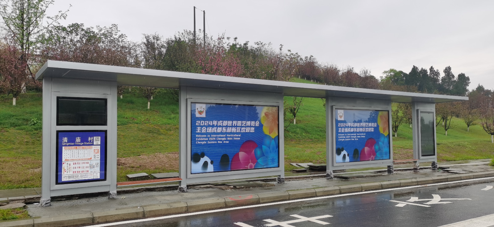 為迎接2024成都世界園藝博覽會,由我公司承建的簡陽東部新區14座公交站臺,僅用了10天時間就完成了生產、安裝及調試,與世園會共同完美呈現。