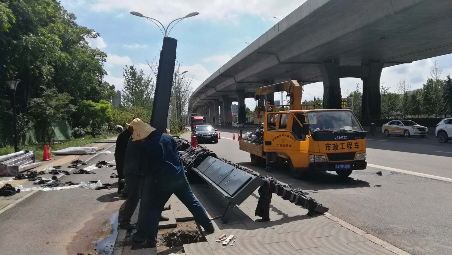 公司及時組織工程部的基建人員、安裝人員、項目經理駐扎武漢現場,因地制宜的調配機具、車輛和安裝器械等,完成了從基坑-預埋-澆筑-清運-安裝-回填-路面恢復等全部施工內容,并交付使用。