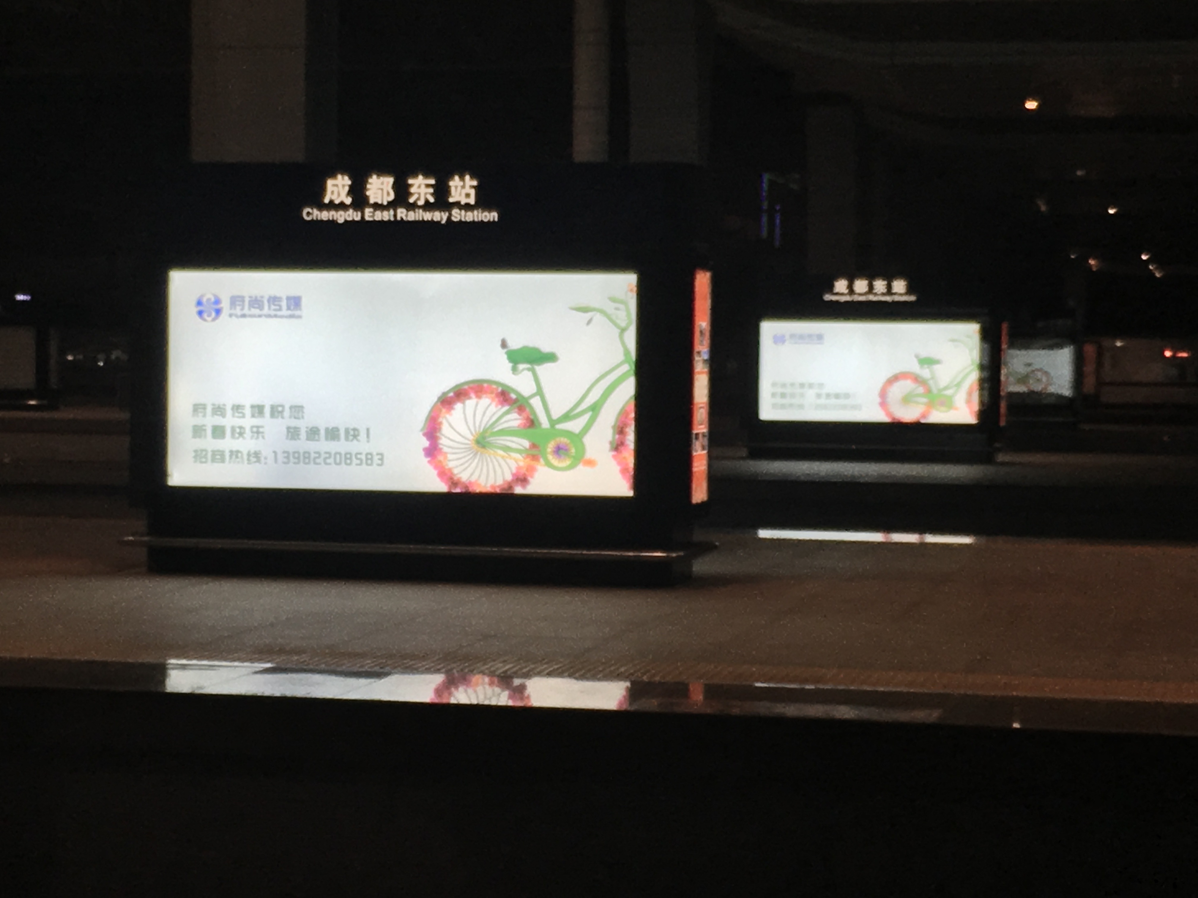 成都東站擁擠的各條站臺上,人群蜂擁上車下車,不經意中會發現,一體式全封閉多功能的廣告燈箱開始啟用,LCD液晶屏、LED走字屏和滾動燈箱畫面閃亮登場。這是府尚傳媒公司在我公司訂制的60套新型多媒體鋁型材燈箱,全部采用無線遠程控制。