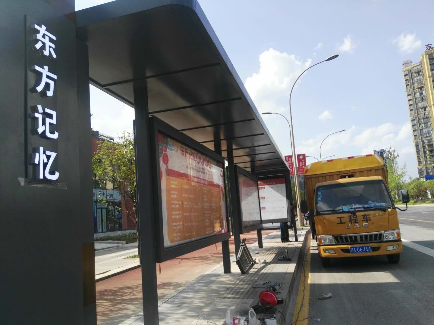 都勻縣公交站臺為金屬烤漆2+1結構,站臺和標牌相結合的設計方案,安裝完成,順利通過業主驗收。